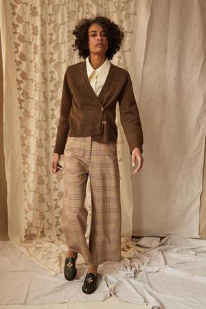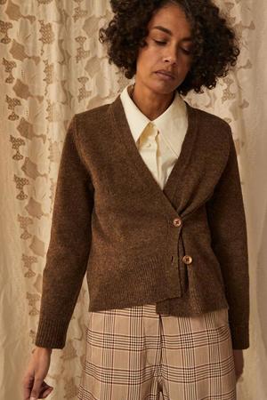 The Jemma Cardigan is a bias cardigan with center back seam and off center buttons. Made in 100% wool, the Jemma Cardigan is perfect for layering over your favorite button down or vintage tee. - Made in China. - 100% Wool, dry clean only. - Model is 5'8", typically a size 2, and wearing a size small.