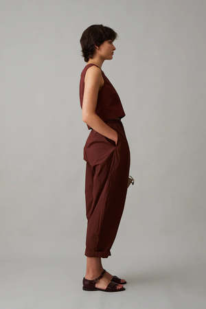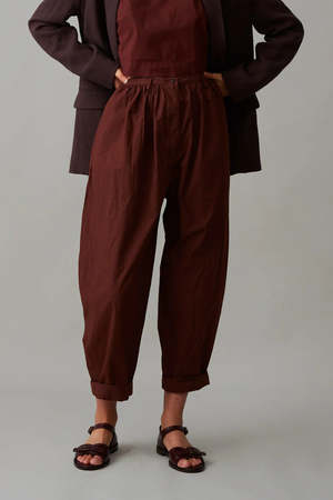 The Brady Trouser combines classic style with modern details for a more feminine touch. Sitting at the natural or high waist, these trousers feature a 1" waistband with belt loops and unique gathered detailing in the front, complemented by clean lines at the back. With a slightly balloon silhouette, they taper at the bottom with a slight crop to balance the volume. The Caron Callahan label was created with the intent to marry understated femininity and function. Curated, well-made pieces exude beauty without the fuss, and are rooted in the ethos of purposefulness and play. - Made in NYC - 100% Cotton - Machine wash, tumble dry low