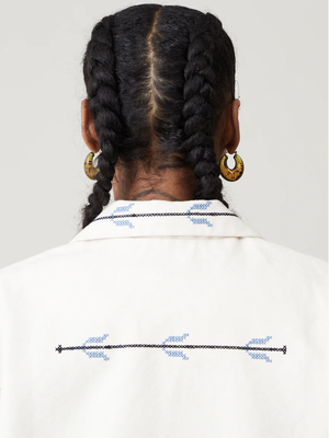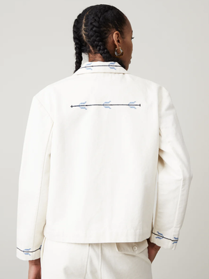 The Bernay Jacket is an oversized and cropped jacket with three front patch pockets, two at the hip and one chest pocket. With two front buttons for closure, a notched collar and curved hem, the Bernay Jacket feels slightly tailored while having an easy and swingy fit. - 100% Cotton - Machine wash cold with like colors, tumble dry low - Made in India