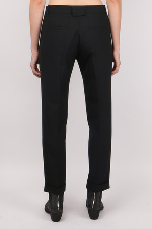 Notes Stretch-woven trousers tailored with tonal side stripes and cuffed hems for a chic, boyish vibe. Clean seams down the back help to visually elongate the cropped cut. Composition 55% Polyester / 45% Wool Measurements Inseam 26.5 in / 67 cm Leg Opening 14 in / 35 cm Front Rise 10 in / 25 cm Back Rise 14.5 in / 37 cm Size 40 Care Dry Clean Made in Portugal EXTRA 30% OFF WITH CODE LOVE30 This Item is Final Sale