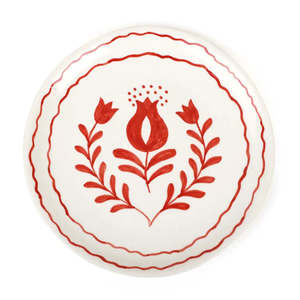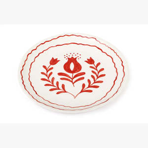 Add a touch of elegance to your table with the Anaar Ceramic Snack Plate. This beautifully handcrafted plate features intricate blue floral detailing, inspired by traditional designs with a modern twist. Perfect for serving snacks, appetizers, or small treats, it brings a charming, artisanal feel to any setting. Material: Ceramic Color: Red Dimension: 7x7 Inches Approx Pattern: Floral Origin: Ethically made in India Care: Soft sponge recommended; dishwasher & microwave safe Note: Each plate is hand-painted, so slight variations make every piece one-of-a-kind.