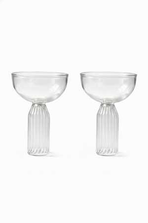 These cocktail glasses from Casa Amarosa are crafted in India from clear glass. The set includes two glasses, each with a ribbed stem and a wide bowl. The 240ml capacity is suitable for various cocktails and desserts. Handwashing with warm, soapy water is recommended to maintain the glass's claritys. FEATURE BULLETS: Crafted from durable, clear glass. Each glass holds 240ml. Dimensions: 4 x 5.5 inches. Handcrafted in India.