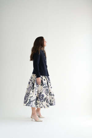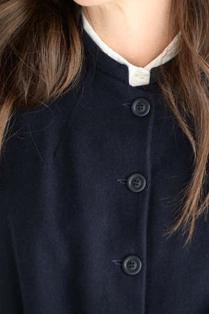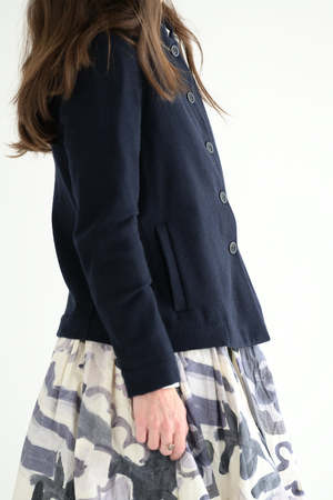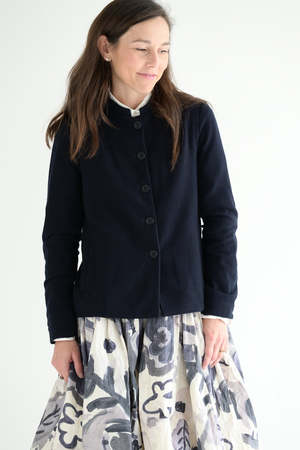 The Casey Casey Emna jacket is a classic in night. Made of the softest blend of cashmere and wool. A light weight, fitted cut. Slash pockets. Corozo buttons. 50% cashmere, 50% virgin wool. Emma is 5'7" wearing size XS.