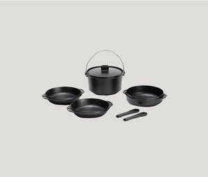 Designed in Japan, the Cast Iron Duo is an all-in-one cook set made using thin casting technology for rapid heat conduction. The set is a versatile option for cooking at home or over the campfire. The Cast Iron Duo includes a cast iron pot, lid, skillet, two plates, handles and storage case.