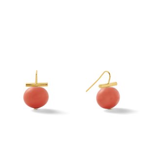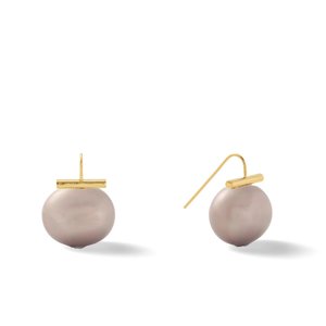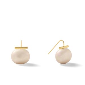 A classic, Catherine Canino's large pebble pearl earrings are handcrafted with crushed mother of pearl shell, formed into a pebble shape, then lacquered and polished to draw out the shell's luster and hue. Finished with 18K matte gold over brass wire.