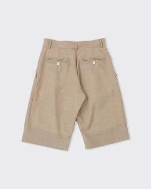 Tailored shorts in pure new wool with a dark beige tone. The Silas Short is handcut and made in London, fully lined in viscose with a refined, relaxed silhouette. The British wool offers natural breathability and a beautiful drape that holds its shape season after seasonan elevated alternative to casual shorts. Made in England, UK. Details - Relaxed, tailored fit - Button and zip closure - Side pockets - Back pockets - Fully lined in viscose - Handcut in London Fabric 100% wool. Lining: 100% viscose. Pure new wool.