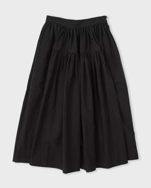 A-line panel skirt in Japanese cotton. Handcut and made in London with panelled construction for elegant movement. Made in England, UK. Details - A-line silhouette with panelled construction - Knee length with graceful drape - Elasticated waist for comfort - Simple, refined construction Fabric 100% Japanese cotton.