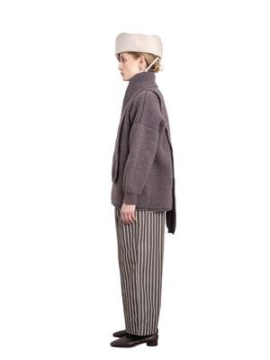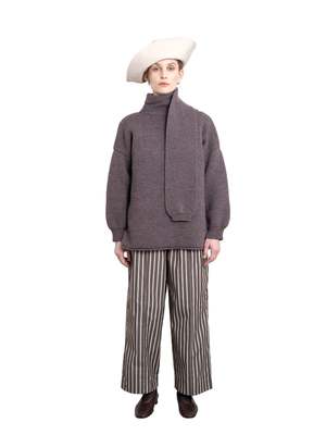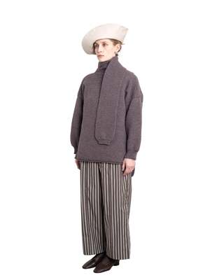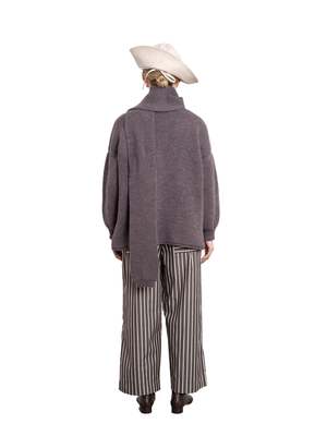 The Wrap Neck Pullover Sweater by CAWLEY STUDIO is knitted from 100% merino wool and features an integrated matching tonal scarf that can drape effortlessly or be tied around the neck. Shaped for an oversized and relaxed fit, this jumper is detailed with dropped shoulders, integrated rib cuffs, rolled hem, and a split side seam. 100% Merino Wool Knitted in the UK.