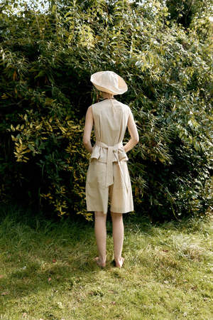 The Flo waistcoat is a timeless and elegant vest that adds a touch of playful charm to any outfit. Crafted from 100% Japanese cotton, it is lightweight with a crisp and structured feel. The waistcoat features a tailored fit with matching covered buttons and a versatile waist tie that can be styled at the front or back to cinch the waist. Pair it with the matching Hilda shorts for an effortless co-ord. Made in London. Material: Japanese typewriter cotton, 100% cotton with covered buttons. Care instructions: Dry clean only. Fit: The Flo waistcoat fits true to size. We recommend taking your usual size. Namara is 5'10" and wears a size XS.