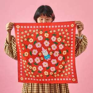 The Cat Garden Gnome Cotton Silk Bandana by Centinelle is a whimsical square scarf featuring a hand-illustrated cat in a garden gnome hat surrounded by flowers. Crafted from a luxurious cotton and silk twill blend, it offers a soft, smooth feel and versatile styling options. PRODUCT FEATURES: - Crafted from a cotton and silk twill blend for a soft, smooth feel. - Unique, hand-illustrated design of a cat in a garden gnome hat, surrounded by flowers. - Versatile design can be worn as a head wrap, neckerchief, headband, or as a stylish accent on bags. - Machine-stitched hem for a neat and durable finish. - One-sided print for a clean, polished look. PRODUCT SPECIFICATIONS: - Material: 30% Silk / 70% Cotton Twill - Dimensions: 23" x 23" / 60 cm x 60 cm - Hemming: Machine hemmed - Weight: 1.6 oz - Illustrated by hand in California by Cris Rose-Guizar.
