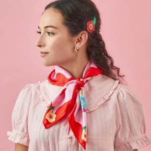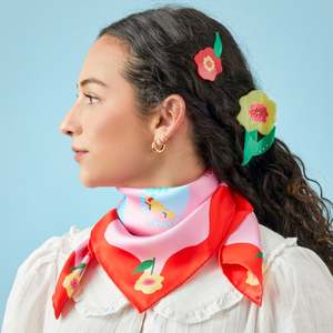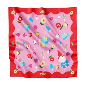 Add a touch of whimsical charm and playful elegance to your everyday style with the Cat Garden Gnome Silk Medium Square Scarf. This vibrant, hand-illustrated piece adds personality to any outfit. The soft, cool touch of pure twill silk feels luxurious against the skin whether tied around the neck or knotted onto a handbag. The charming design features a cat gnome surrounded by fruits and flowers. Designed with versatility in mind, this scarf can be worn in multiple ways, making it a special accessory youll reach for often. PRODUCT FEATURES: - Crafted from 100% twill silk for a luxurious feel and beautiful drape. - Unique, hand-illustrated design by Cris Rose-Guizar. - Double-sided print ensures the design looks vibrant from every angle. - Hand-rolled edges add artisanal quality and a polished finish. PRODUCT SPECS: - Material: 100% Twill Silk - Dimensions: 26" x 26" / 65cm x 65cm - Edges: Hand rolled - Print: Double-side printed - Artist: Illustrated by hand in California by Cris Rose-Guizar - Sourcing: Ethically sourced - Weight: 1.8 oz