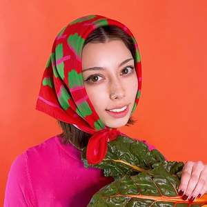 Elevate your everyday style with the vibrant and versatile Glowing Chard Cotton Silk Bandana, inspired by the iconic look of Sydney Adamu from "The Bear." The soft, luxurious cotton and silk twill blend feels smooth against the skin and can be tied as a chic headband, neckerchief, or head wrap, adding a playful pop of color to any outfit. This unique bandana features a hand-illustrated chard print created in California, making it a wearable piece of art. Its generous size and smooth, machine-stitched hem make it easy to style in multiple ways and ensure lasting durability. PRODUCT FEATURES: - As seen on "The Bear" FX Sydney Adamu style (S3 E3) - Luxurious cotton and silk twill blend for a soft, smooth feel - Versatile for use as a head wrap, neckerchief, headband, or in bandana hairstyles - Unique, hand-illustrated chard print - Precisely machine-stitched hem for a clean finish and durability PRODUCT SPECIFICATIONS: - Material: 30% Silk / 70% Cotton Twill - Dimensions: 23" x 23" / 60 cm x 60 cm - Construction: Machine hemming - Print: One side printed - Illustrated by hand in California by Cris Rose-Guizar - Ethically sourced - Weight: 1.6 oz