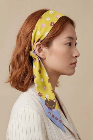 This skinny twill silk scarf offers versatile styling options. Crafted from 100% twill silk, it features a double-sided design for varied looks. The scarf can be worn as a headscarf, bracelet, or tied to a hair bun, and also serves as a decorative accent for bag handles. The print is hand-illustrated in California by Cris Rose-Guizar. This accessory is designed for longevity and can be incorporated into various ensembles. It is ethically sourced and weighs approximately 1.0 oz. Dimensions: 2.5 in x 45 in / 6 cm x 114 cm. Style: 100326.