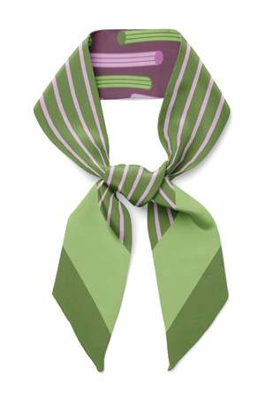 The Churros Twilly Ribbon Scarf by Centinelle is a versatile accessory crafted from 100% double-sided twill silk. This skinny scarf can be styled in multiple ways, including as a headscarf, bracelet, tied to a hair bun, or wrapped around bag handles. Crafted from 100% twill silk, it offers a smooth texture, lasting wear, and a soft feel against the skin. The double-sided design provides two distinct looks in one accessory. The illustrated print is hand-drawn in California by Cris Rose-Guizar. Measures 2.5 inches x 45 inches (6 cm x 114 cm). Style number: 100326.