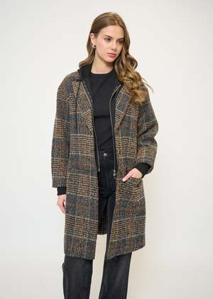 This tailored coat combines polished design with everyday wearability. The integrated hoodie adds a relaxed dimension to the structured silhouette, while plush interior lining ensures cozy warmth. Practical front pockets and a button-front fastening deliver both style and function.