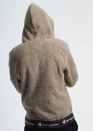 Classic Reverse Weave Sherpa hooded pullover. Half Zipped front. Champion logo2 ribbed cuffs at sleeve and hem. Features a tackle twill applique "C" on chest. Regular Fit 100% Nylon Twill Imported Model is wearing size M Model is 511 (180 cm), 140 pounds (63 kg), usually wears size S/46 in tops. A size 30 in denim, and size 46 in trousers. Size 10 in shoes.