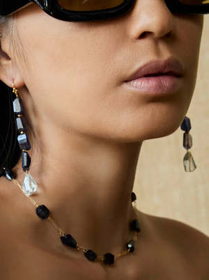 Gold chain necklace featuring hand-cut iolite beads. DESIGNER ID: NG-15391 COMPOSITION: 18K Gold Plated Sterling Silver, and Iolite. DETAILS: 16" - 18" Adjustable Handmade in Vietnam.