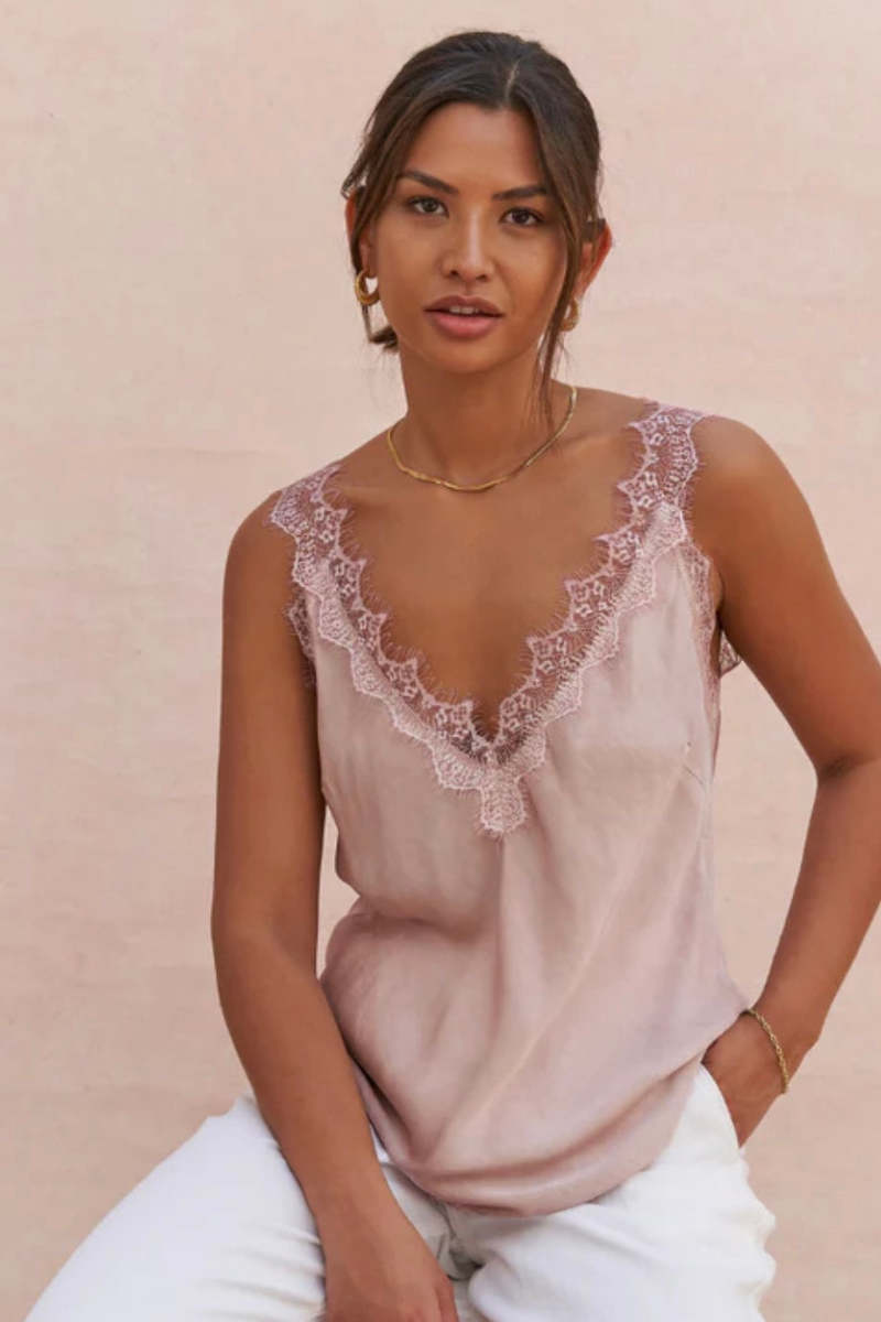 The Solange Camisole is a luxe basic designed to pair easily with minimal separates for an elevated look. Made from soft, drapey viscose satin that is easy to care for. - One Size - Relaxed Fit - Colour: Blush - Fits UK Size 8-14 | US Size 4-10