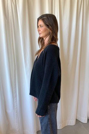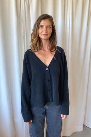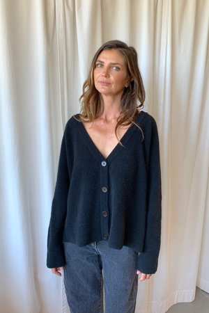 Short v neck cardigan with button closure in a soft wool blend. - 42% Polyamide, 33% Wool, 23% Alpaca, 2% Elastane - Made in Bulgaria - Model is 58 and wearing size Med