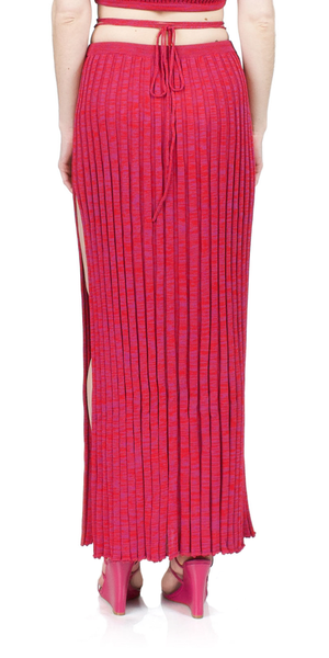 Christopher Esber's signature luxe rib knit fabric is crafted into the Pleated Knit Tie Skirt. This drawstring-closure skirt features a pleated style with a high slit at the left leg and is offered in a vibrant raspberry color. Enjoy a high-fashion look and unparalleled comfort. Details: - Color: Raspberry - 89% viscose, 11% nylon - Drawstring closure at waist - Unlined - Fits true to size - Model is 5ft 5in and is wearing a size S