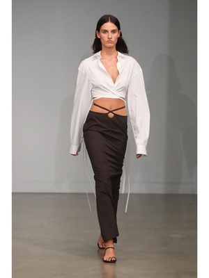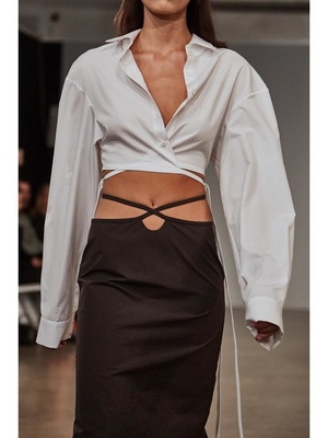 The Loophole Tie Skirt from Christopher Esber is cut from a cotton blend fabrication, it features ties that wrap around the body. Cotton blend fabrication Two front ties Narrow silhouette Material 25% Cotton, 72% Nylon