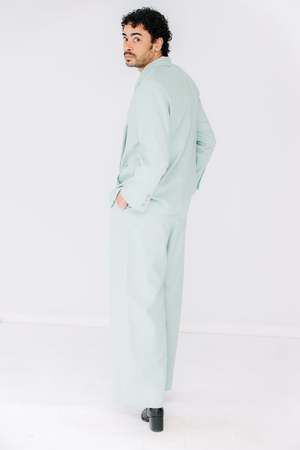 the christy lynn dylan pant is a straight-legged trouser featuring a flat waistband, pleats, and pockets. pair with the freya blazer for a fresh suit that can be styled year round. the dylan pants are made from a linen + rayon blend, and we recommend dry clean only. christy lynn garments are ethically-made in brooklyn, nyc.
