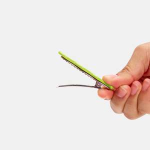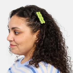 A perfect pair of alligator clips. Small metal teeth provide a strong hold with no snagging. Ideal for all hair types and lengths, and great for taming bangs and flyaways. Made from high-quality acetate, a durable plant-based bioplastic. Metal hardware is lead- and nickel-free. Slight variations will appear in pattern, color, and form due to the handmade nature of the product. Measures approximately 2.5" L x 0.5" H x 0.5" D. Color: Lime with silver-tone hardware. Type: Accessories.