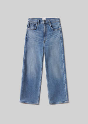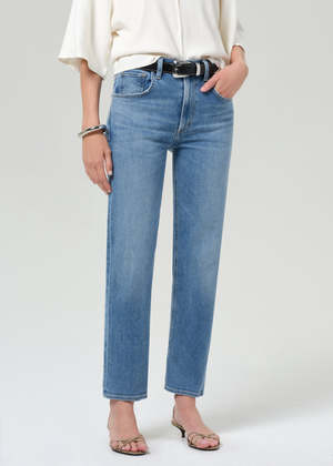 The Delfina from Citizens of Humanity is a high-rise straight leg jean crafted from signature cashmere-blend denim for a super-soft hand. The silhouette sits high on the waist and falls to a full-length straight leg. Finished in a light to medium indigo wash, its a versatile denim that works just as well for everyday wear as it does dressed up. This fit is true to size. Looks Like: Light to medium indigo denim pant Feels Like: Signature denim blended with cashmere for a super soft hand Closure: Zip fly Rise: 11 1/2" Inseam: 27 1/2" Leg Opening: 15 3/4" Model is 5'10" and wearing a size 27 Fabric Content: 93% Cotton, 5.5% Cashmere, 1.5% Elastane Care Instructions: Machine wash cold inside out with like colors. Do not bleach. Tumble dry low.
