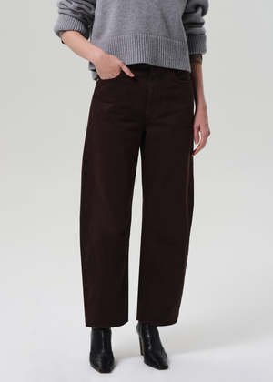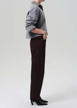 The Miro Twill Jean in Carob by Citizens of Humanity offers a subtle take on the barrel silhouette, cut high at the waist with a relaxed shape that softly tapers to the ankle. Crafted from rigid cotton denim with an authentic hand, the clean finish keeps the look refined. 100% cotton. Rigid, non-stretch denim with an authentic feel. Front rise 12in, inseam 27.5in, leg opening 17.5in. 2149B-1248