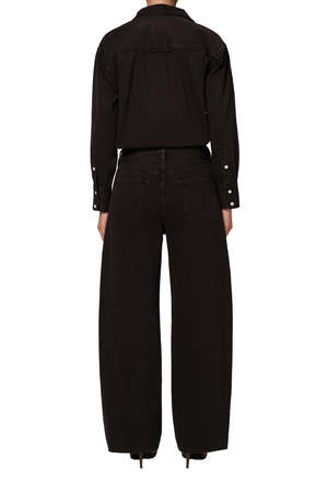 The Brynn drawstring trouser jeans in dark brown Carob from Citizens of Humanity are cut in a lightweight regenerative cotton with a beautiful drape. Designed with a wide leg, a drawstring waist, and a full-length inseam. Made from rigid, non-stretch cotton denim with a soft hand for all-day wearability. Fit is true to size. Rise: 12 1/4", inseam: 32", leg opening: 21 3/4". Model is 5'10" and wearing a size 27. 100% regenerative cotton. Style codes: 2069B-1185, 2069B-1136. Made in USA with imported materials.