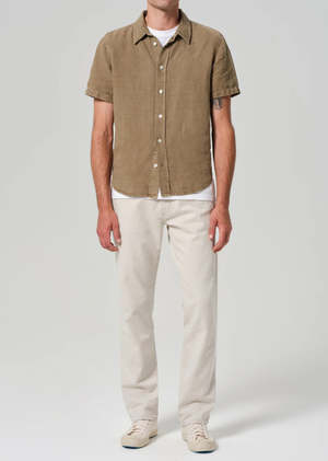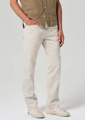 The Elijah Relaxed Straight Linen Jeans by Citizens of Humanity offer a relaxed fit with a straight cut throughout the hip and leg. If you loved the Sid or Perfect Casual Straight Fit, you will love the Elijah. Composition: 67% Cotton, 32% Linen, 1% Elastane. Color: Natural. Size: True to Size.