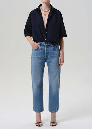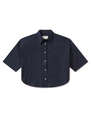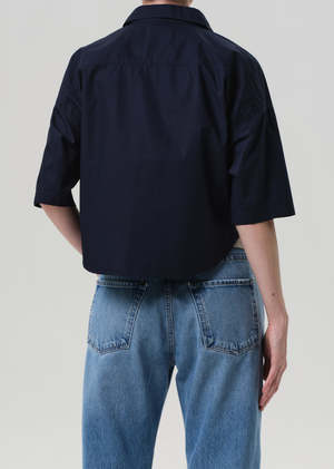 The Frances Cropped Cape Button Up by Citizens of Humanity features a subtle cape-inspired back detail. Crafted from ultra-lightweight cotton poplin with an airy, breathable feel. 100% cotton. Body length 23.25", sleeve length 9.5", shoulder to shoulder 23", chest 45.5". Made in Turkey. 9439-1847