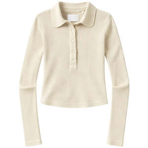 This long-sleeve ribbed polo-style top from Citizens of Humanity offers an effortless, put-together look with everyday comfort. The fit & feel A slim, body-skimming fit with stretch that hugs without feeling restrictive. The ribbed fabric smooths nicely and the long sleeves balance the slightly cropped length for a flattering silhouette. How youll wear it Perfect with high-rise denim, tailored trousers, or relaxed cargos. Button it up for a clean, minimal look, or leave a few undone for a more relaxed feel. Great on its own or layered under jackets and knits. Details - Ribbed long-sleeve polo-style top - Soft collar with button placket - Cropped length - Stretch for comfort and ease - Fabric: 49% organic cotton, 49% TENCEL Lyocell, 2% spandex.