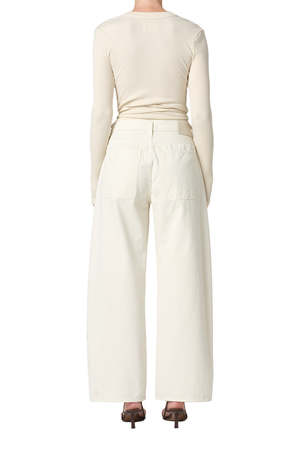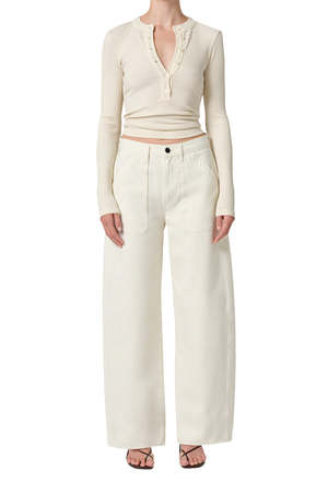 This cargo pant features an articulated ankle and utility pockets. Pair with your favorite oversized sweater and loafers for a cozy winter look. MATERIAL 100% Regenerative Cotton COLOR Pashmina INSEAM 31" CARE Machine wash cold inside out with like colors. Do not bleach. Tumble dry low. ORIGIN Made in Turkey.
