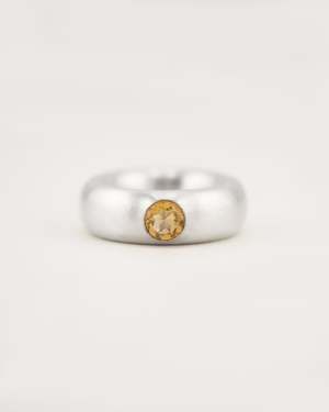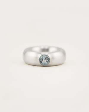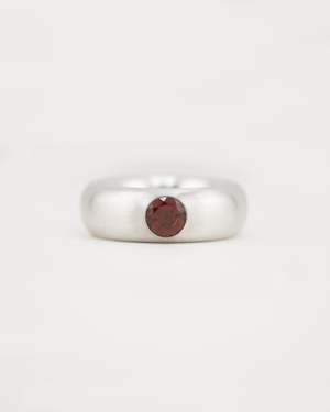 The Luna Ring is a sculptural piece featuring a thick, wide donut-shaped band with a smooth, rounded profile. Crafted in solid sterling silver, it carries a substantial weight, giving it a grounded and intentional presence. Set with a single large 6 mm faceted gemstone, it adds a bold touch of color to the otherwise minimal form. Sterling silver with stone of choice. Due to the handcrafted nature of each piece, subtle variations and natural imperfections are to be expected. Made to order. Production time: 2 weeks.