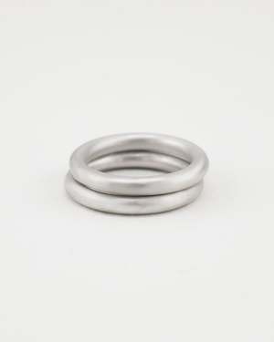 The Donut Ring Stack includes two solid, rounded bands with a smooth, domed shape that sit together as a single, sculptural form. Clean and weighty, the stacked design creates a bold profile with a soft edgesimple and refined. Sterling silver. Sizing/Fit: This ring runs slightly large due to its rounded band. We recommend sizing down if you're between sizes. Due to its handcrafted nature, slight variations and natural imperfections may occur. Made to order. Production time: 2 weeks.