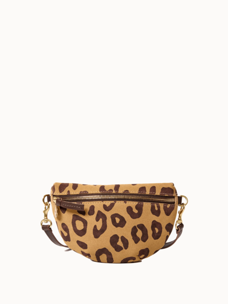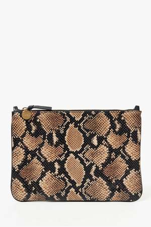 Dimensions (in inches): 11 1/2 W x 8 H Leather loop tabs for strap attachment (strap not included) Lined in chambray Black zipper No interior compartments or pockets Made in L.A.