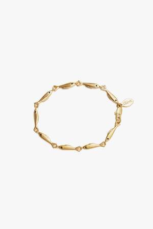 Sardine bracelet with gold-plated chain and clasp. Details: - 14k vintage gold-plated brass - Length: 7 inches - Made in China