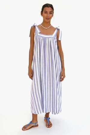 Get ready for some fun in the sun with this breezy, linen summer dress! Featuring a playful square neckline, adorable shoulder ties, and convenient pockets, this dress will surely make a statement (and hold your sunscreen!) Details: - 100% Linen - Pre-shrunk - Made in India *Photos from Clare V. About the brand: After noticing a lack of functional yet stylish laptop cases while working as a journalist for French TV, Clare decided to create her own line of handbags and accessories. Over time, Clares been able to cultivate an identifiable aesthetic that's all her own and has been recognized worldwide by influencers, tastemakers, celebrities and bloggers, who support and wear the line. Clares strong connection to France, where she spends a significant amount of time each year with her French husband and son, remains at the core of the brand, with signature elements visible within every collectsion.