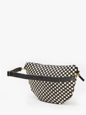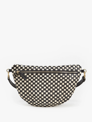 The Grande Fanny by Clare V. is a versatile bag that can be worn as a cross-body, fanny pack, or shoulder bag. It features an adjustable and detachable 14-hole strap (19-39") and is made of handwoven leather in Bangladesh. Dimensions: 12 3/4" w x 8" h.