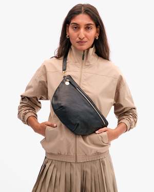 She goes everywhere and with everythingmeet the Clare V. classic. Your new go-to bag, whether you wear it as a hands-free crossbody, a bum bag, or a shoulder bag. Versatile, stylish, and always ready for whatever your day brings. Details Dimensions (in inches): 12 3/4" W x 8" H Strap: 19"39" (adjustable and detachable 14-hole strap) Lined in chambray Black zipper No interior or exterior pockets Please note: unfinished leather strips may be susceptible to dye transfer. Please use care when pairing with light items. Origin Made in Vietnam. Material Made of pebbled, vegetable-tanned Italian leather. Care Have professionally cleaned. Handle with care during use. Light colors of this material are susceptible to water damage, staining, and color transfer.