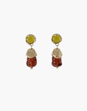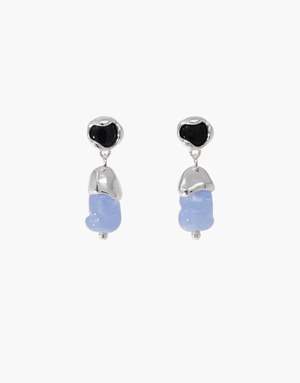 Goyo(): Serenity Collection The Solace Drop Earrings feature softly rounded studs with smooth organic drops that flow like melted forms. The glass elements are gently cradled in sculptural metal, creating a calm, grounding silhouette. Each shape is thoughtfully arranged to evoke a quiet, meditative rhythm.