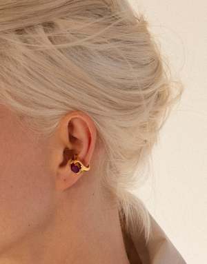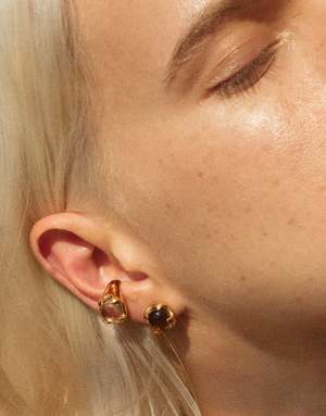 MADE TO ORDER: Please allow 1-2 weeks for shipping as all pieces are made to order Rays of Light: Prism Spectral colors that shine when a prism catches the light at a precise angle are a beautiful sight to see, just like a rainbow. This collectsion represents our interpretation of the colors we see from this natural phenomenon through CLED eco gems upcycled from discarded glass. Sold individually Available in Sterling Silver or 24K Gold Plated Brass Hand-formed Eco Gem repurposed from discarded glass bottles Length 0.4 in | 0.9 cm Made in Los Angeles Made in Los Angeles, USA Please note each piece is individually handmade so size and color may slightly vary from the featured images.