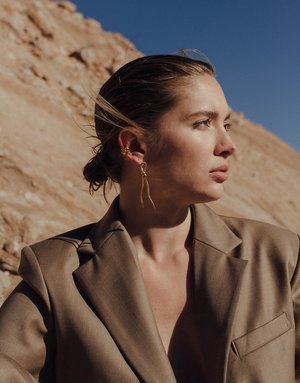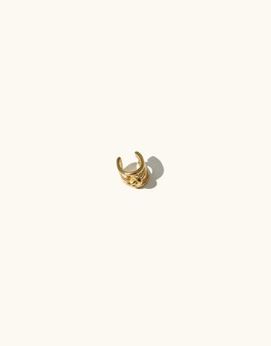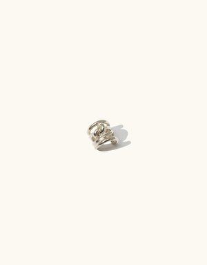 Terrain Collection | This collectsion is inspired by the formation of canyon terrain. Abstract molten forms and layers of glass represent the distinct canyon formations and shades, highlighting the beauty of this terrain. Intertwined metal shape that can be worn alone or with statement earrings like the Rock Dangling Earrings. Also available in an earring version. Sold single Available in Sterling Silver or Gold Vermeil Length 0.4 in | 1 cm Made in Los Angeles Please note each piece is individually handmade so size and color may slightly vary from the featured images.