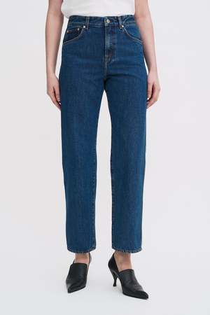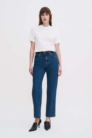 High Waisted Cropped Jeans in non-stretch organic cotton denim with a high waist and straight leg with a cropped length. Wear them with boots and a tucked-in top for an elevated silhouette. - Model is 180 cm / 5'11'' and is wearing a size 36 / S - Cropped length - Regular fit - High rise - Mid-weight - Non-stretch - 100% Cotton (Organic)