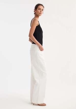 Step into casual comfort with these low-waisted wide leg denim jeans made from a soft washed light cotton in a relaxed fit, perfect for everyday wear. - Low-waist fit with branded metal button - Composition: 80% cotton, 20% recycled cotton - Model is 179cm and is wearing a size EU 36 - Available sizes: 32/0, 34/2, 36/4, 38/6, 40/8