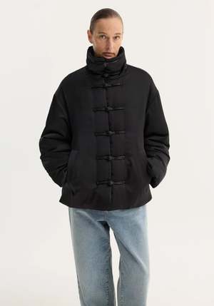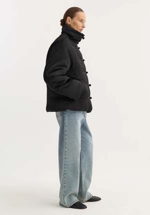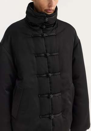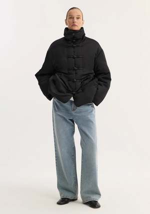 The signature Rhe Marie jacket, reimagined with puffer padding and a water-repellent coating. Finished with beautiful mandarin pankou closures, slanted welt pockets, and a high collar. A striking design that makes an instant impression on any occasion. - Water-repellent coating, slanted welt pockets, pankou closure - Composition: 100% polyester exterior, 100% cotton filling - Model is 179 cm and wearing a size 36.