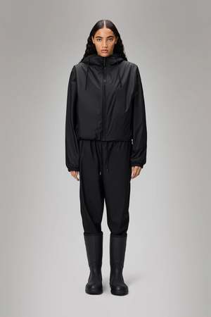 Lohja Short Insulated Jacket is a lightweight transeasonal piece in a cropped silhouette, designed for understated style and high practicality. Features include concealed fleece-lined side pockets, elasticated cuffs, and an insulated hood with drawstring adjustment. The jacket is insulated with light padding, making it ideal for in-between seasons or mild winters. Constructed from Rains' signature waterproof PU fabric with double welded seams for a lightweight, smooth finish. Model is 177cm / 5 9 tall and wearing a size M.