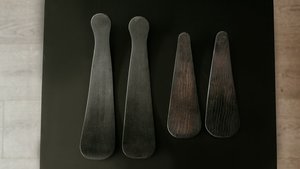 Toss leafy greens with a well-crafted, artisanal flair. These hand-made salad tossers have an elegant and slightly bowed shape. They are sustainably sourced, upcycled, and handcrafted in New England. 11.5" These tossers are made of black ebonized wood. Our ebonized bowls are made by using a natural process to darken wood that allows a beautiful wood grain to show through. The ebonizing process reacts with the tannins in the wood creating bowls that are dark brown to black and 100% food safe. Our ebonized bowls are most frequently made from oak wood which is a sought after hardwood known for being strong, heavy and straight-grained.