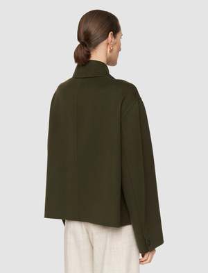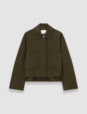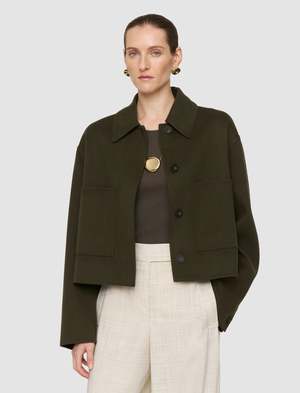 The Kalaa Light Double Face Wool Jacket is a relaxed fit, short silhouette, crafted from a luxurious wool-silk blend. This refined style features a concealed placket, curved sleeves, and a step hemline for a modern, sculptural finish. Model wears size FR 38/UK 10/EU 36/US 6/DE 36/IT 42/JP 9. - Designed for a relaxed fit - Classic collar - Chest patch pocket - Corozo buttons - Curved hemline 85% wool, 15% silk Also available in Marble Melange.